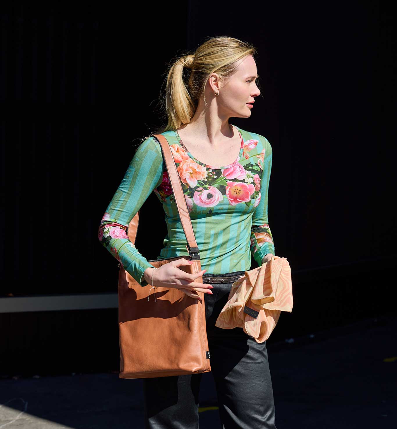 Unser Model trägt dazu die Tasche Gustav. Leicht. Schlicht. Cool.